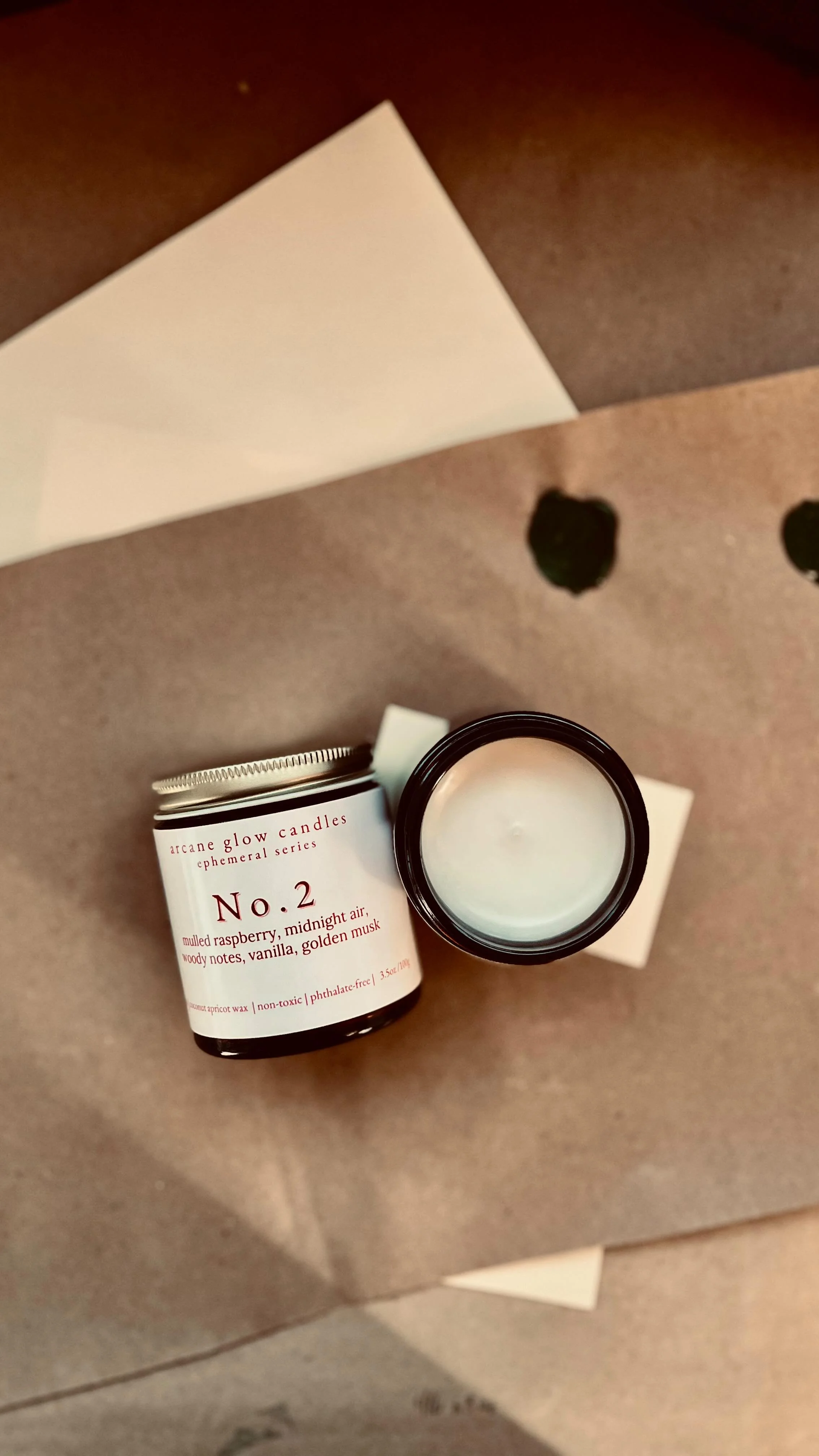 We use an environmentally friendly wax crafted from coconut meat and apricot shells, made in California. When sourcing supplies we support small business candle suppliers—no Amazon orders here!